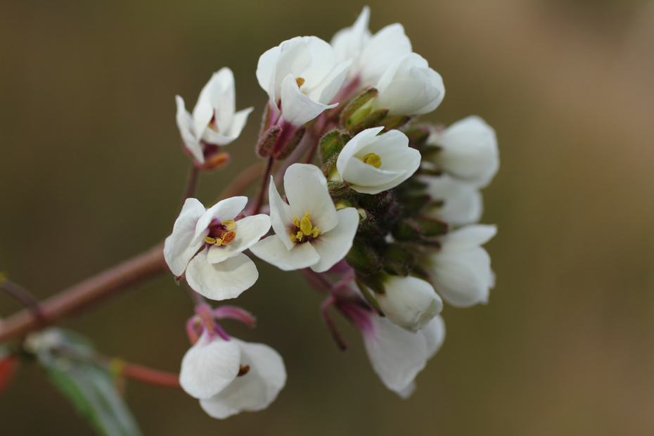 de color blanco o lila muy claro con nervios más oscuros, aparece a principios de la primavera.